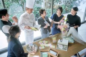 結婚式でご提供するメニューの開発や婚礼料理、宴会料理の仕込み、まかない作り等の調理全般を行います。地産地消にこだわる地域性のある料理の考案や、試食会では季節ごとのオススメメニューを考案し、お客様にご提供しています。料理長になると、おふたりごとにこだわりのあるお料理をご提供できるよう、全ての新郎新婦様と直接料理メニューの打合せも行っています。