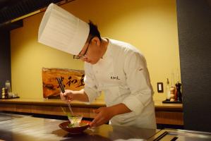 ●鉄板焼大和屋:最高級和牛の他、地産地消の野菜や米、海の幸を提供する、和モダン空間の鉄板焼き店