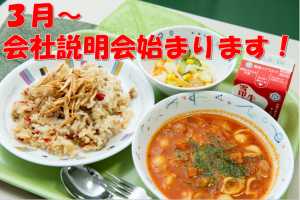 ニュース【学校給食特化の給食会社】3月から説明会スタート!!