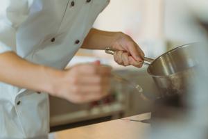 調理スタッフ…ご入居者のうち約8割はお元気な方です。レストランに来店され、その日のメニューから注文していただいたメニューをバイオーダーで調理します。季節に合わせたイベント料理も頻繁に登場します。献立は毎日日替わりですが、そのメニューは本社で一括して考案されているので、配属先ではそのレシピに沿って仕込みから調理までを行います。温かいものは温かいうちに、冷たいものは冷たいうちに、出来立ての美味しさを一緒に提供しましょう。